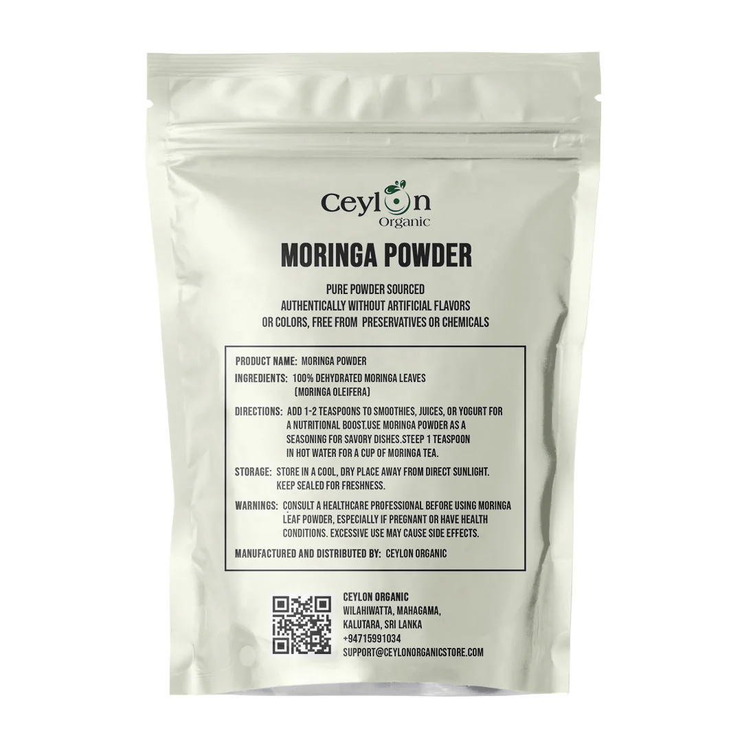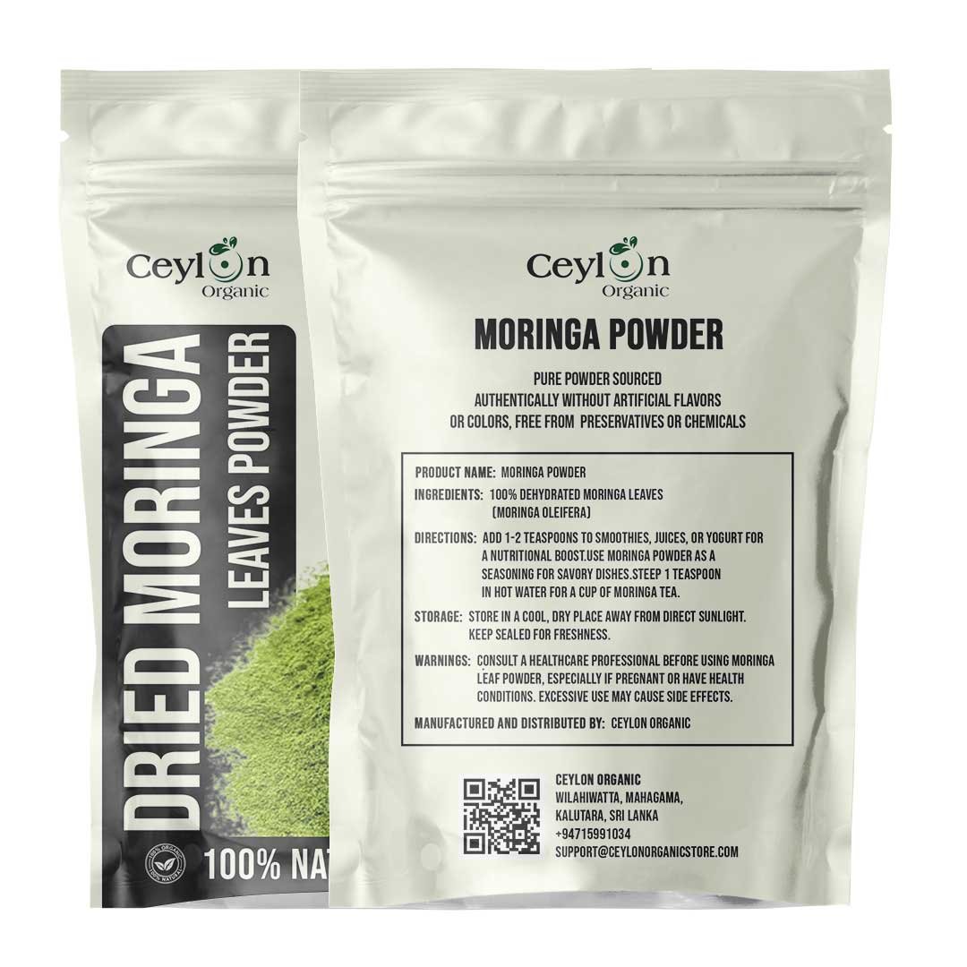 Experience the pure essence of Moringa Oleifera with our premium dried leaf powder. Sourced from the lush regions of Ceylon, this organic and natural powder is meticulously processed to retain its inherent qualities. Ideal for culinary applications and traditional uses, it brings a unique flavor and richness to your dishes and beverages.